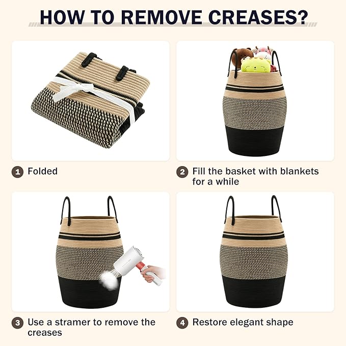 - 【Multipurpose Storage Baskets】105L capacity basket can keep things organized in a stylish and decorative way. You can use them to store extra towels, blanket, clothing, toys for baby and dogs, books, pillows or any other household items around the house, anything you can imagine
