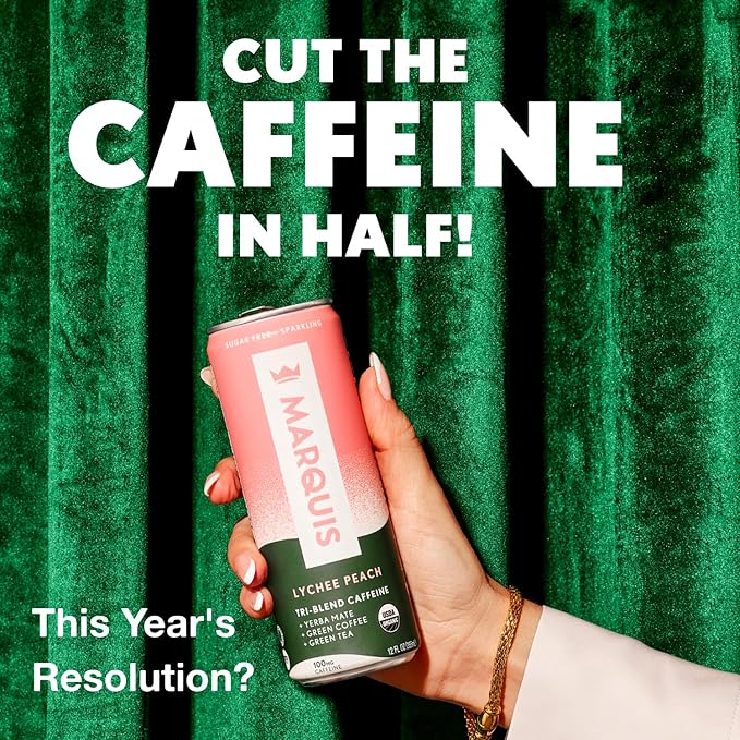 Marquis - Natural Energy Drink - Lychee Peach - Sugar Free - 0 Calories - 100mg of Organic Plant Based Caffeine - Yerba Mate - Green Tea - Vitamin C & B Vitamins - Vegan - 12 oz Cans - 12 Pack