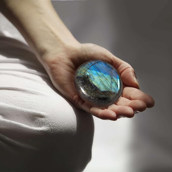 - 🔮【Exquisite Fire Labradorite Palm Stone】This luminous labradorite crystal comes shaped into a comforting stone, with stunning flash on both sides. It’s an amazing amulet for mopping up bad moods and can even help lift you out of a depressive mood