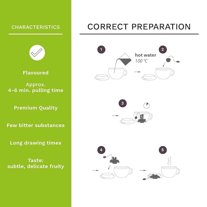 - CHARACTERISTICS: The Blooming Tea tea blossom opens in the cup and unfolds all its beauty and the slightly fruity taste. Up to three infusions per ball are possible. The mild white tea is lovingly complemented by marigolds, jasmine blossoms, hibiscus & roses and is flavored in the varieties cherry, strawberry, lemon or mango.