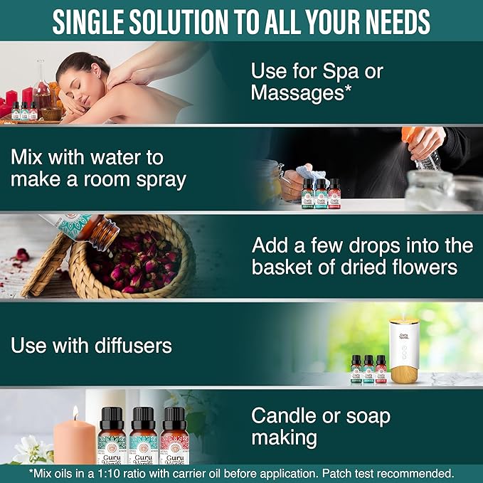 - MULTIPLE BENEFITS IN EVERY DROP: Beyond their enchanting and freshening aroma, these oils are traditionally believed to help ease congestion and promote healthier breathing. Infuse tranquility into your moments by adding a few drops to your diffuser, or amplifying your self-care routines during yoga, meditation, or massages. Elevate wellness by blending with carrier oils in DIY recipes.