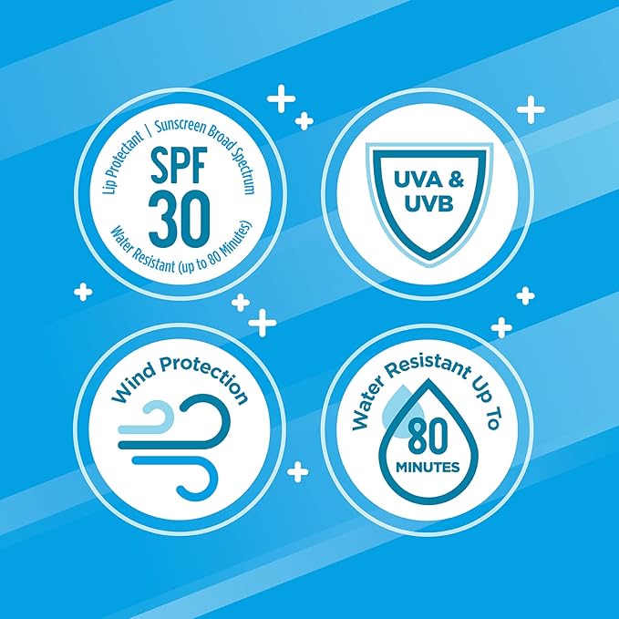 - Carmex lip balm pack is water-resistant for up to 80 minutes to stay put while you swim, ski or sweat for sun protection and protection from winds
