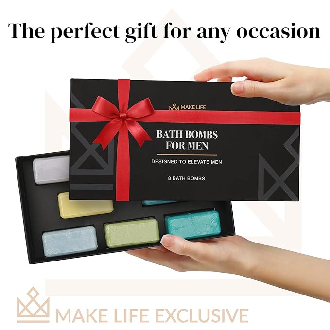 - 👑MAKE LIFE EXCLUSIVE GUARNTEE! - Put your mind at ease with our 1 year money back guarantee! These bath bombs have been tried, tested and voted by men, for men. With these scents, we are confident that everyone will enjoy this aromatic experience!