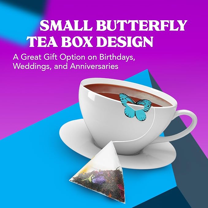 - Fly Like a Butterfly: Astonish your guests with beautifully crafted tea pyramids and a thread with a cute paper butterfly. Open amusing and compact boxes with ample, vivid, multi-layered, and fragranced tea variety pack blends inside.