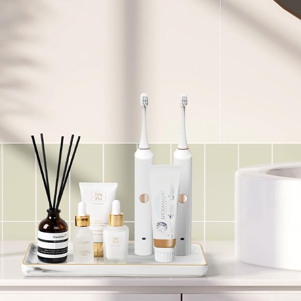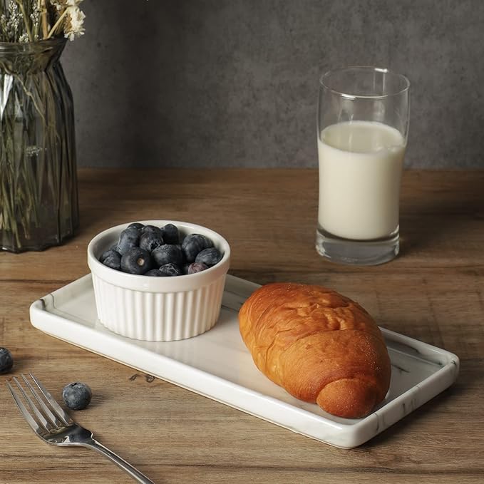 Gurygo 10" Bathroom Tray for Counter, Ceramic Vanity Trays for Bathroom, Small Rectangle Ceramic Trays, Kitchen Soap Ceramic Tray for Kitchen Counter, (Marble White, Set/1)