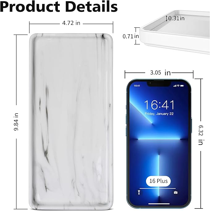 - PERFECT SIZE:: The marble rectangle tray outside size: 9.84"x4.72"x0.71",set of 1; Please confirm the size before purchase