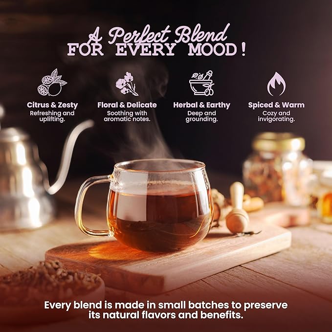 - ECO-FRIENDLY: Appreciate the eco-friendly packaging of our tisane tea, with each tisane housed in reusable glass jars and a durable cardboard case made from renewable resources. This thoughtful design of our tisane not only reduces plastic waste but also encourages reusing or recycling, contributing to a greener planet with every delightful sip.