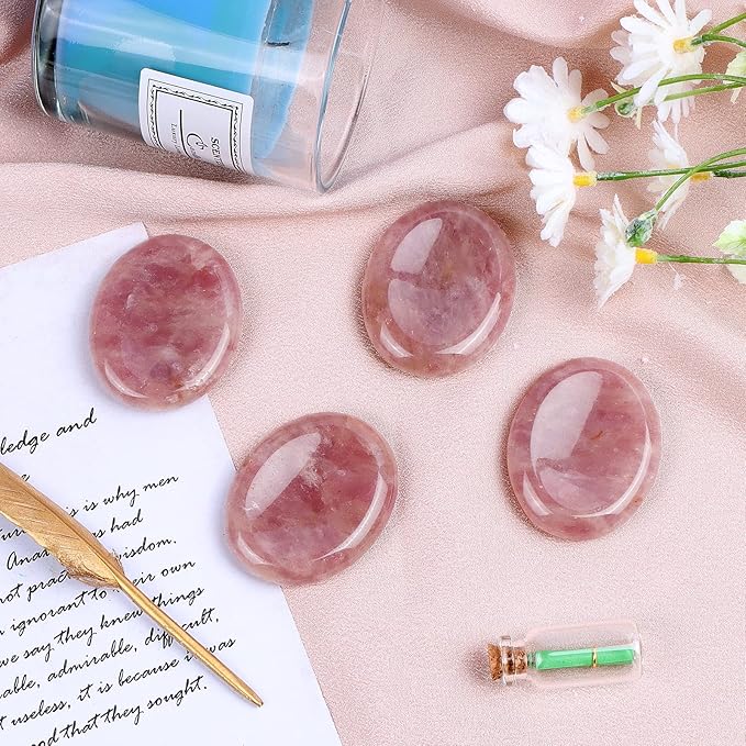 2" Strawberry Quartz Worry Stone Cherry Palm Stones Healing Crystals for Anxiety Meditation Thumb Stone Witchy Strawberry Decor Gift