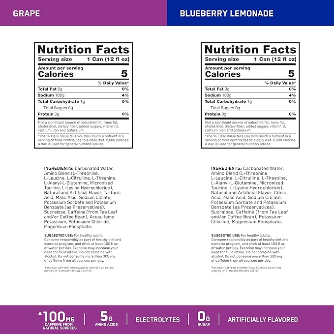 - Energy and Hydration: A refreshing blend of 100mg of caffeine from natural sources plus electrolytes for hydration