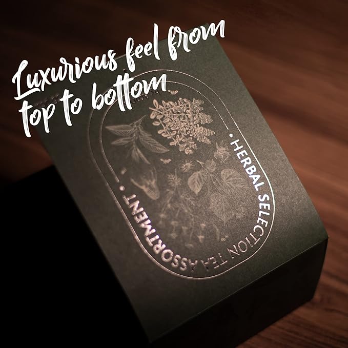 - LARGE 56-TEA BAG HERBAL TEA ASSORTMENT. This luxurious herbal tea assortment is designed for tea lovers who value quality and quantity. Packaged in an elegant tea box, it’s crafted to delight those with a discerning taste for premium teas. The box’s design reflects the high quality of the product, perfectly complementing the herbal tea flavors within. Each element has been attentively selected to create a tea set that is as beautiful as it is flavorful.