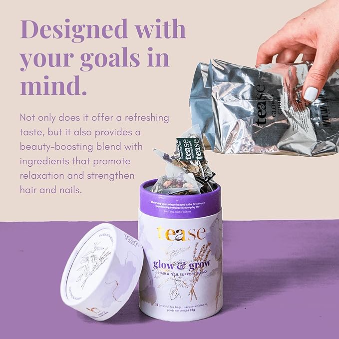 - Blends with Benefits: Not just your ordinary herbal teas., Tease Tea Grow & Glow blend is designed with your goals in mind. Not only does it offer a refreshing hydration, but it also provides a flavorful infusion of inner and outer beauty enhancing ingredients.