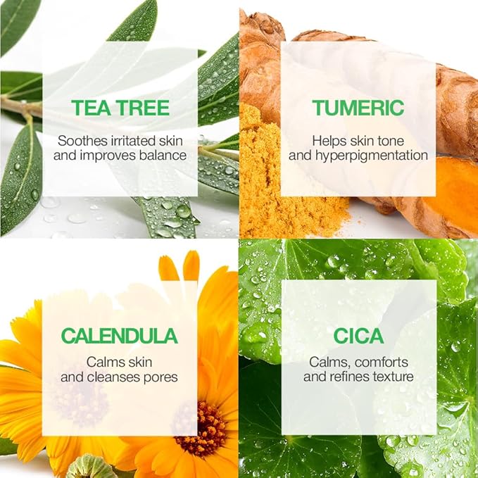 - Revitalizing Face Mask Trio: Experience the healing hydration of Cica, the antioxidant-rich nourishment of Turmeric, and the soothing relief of Tea Tree. Together, they promote renewal, reduce redness, and enhance hydration for a refreshed, even complexion.
