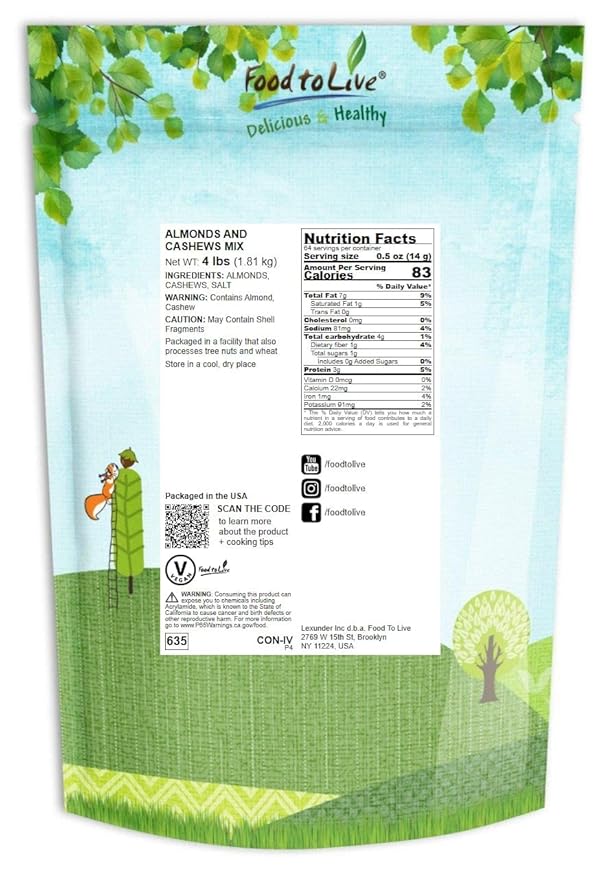 - ✔️ PREMIUM QUALITY, KETO, PALEO, VEGAN: Food to Live’s Almonds and Cashews Roasted and Salted Mix consists of premium quality ingredients and is Vegan, Keto, and Paleo diets friendly.