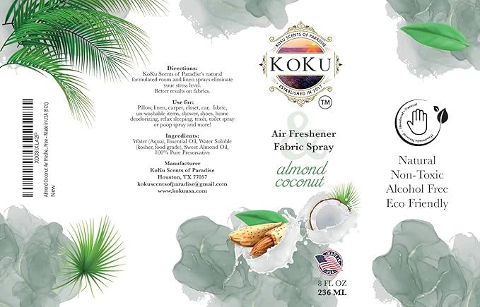 - Essential Oil Spray: Almond coconut air freshener with almond coconut room spray that works to neutralizer odors safe with natural way. Healthful benefits of aromatherapy. Our air freshener spray is uses natural essential oils.