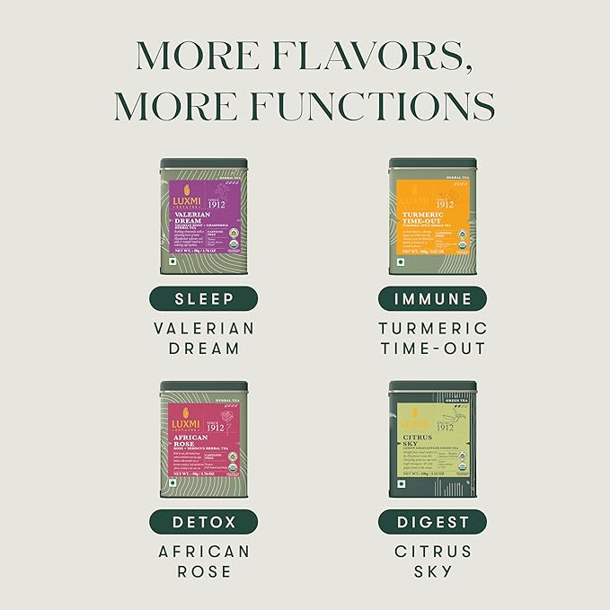 - TRY OUR OTHER FLAVORS : There's a tea for any time in the day. Try our English Breakfast, Masala Chai, Ashwagandha Tea, Earl Grey, Turmeric Tea, Organic teas and a variety of our herbal teas.