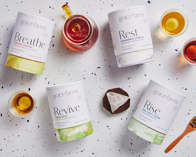 Grace Farms BREATHE Wellness Organic Tea Blend (16 Pyramid Sachets) | Turmeric and Ginger with Adaptogenic Herbs | Immunity Support | Caffeine Free | Gives Back 100% of Profits