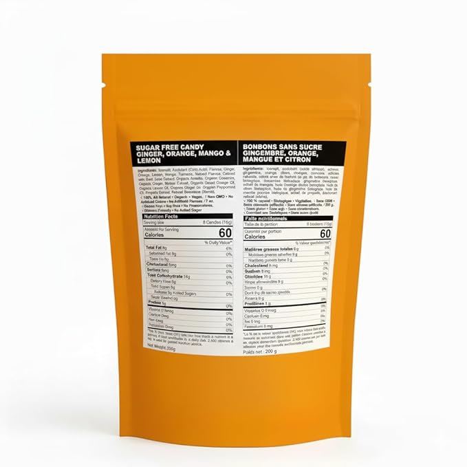 - Bold Citrus-Ginger Flavor, Ideal for Diabetic Snacks: Infused with natural mango, orange, and lemon flavors, this sugar free hard candy delivers a zesty twist. A low calorie, sugar free ginger candy option that fits into diabetic snacks and keto diets, no artificial sweeteners or colors, just clean taste.