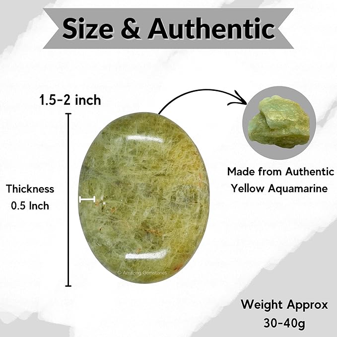 - Large Yellow Aquamarine Palm Stone : Our yellow aquamarine palm stone is large that perfectly fits in your palm and perfect for those who appreciate crystals and healing stones. This authentic yellow aquamarine stone is ideal for reiki supplies and other spiritual practices, making it a thoughtful birthday gifts for men and women.