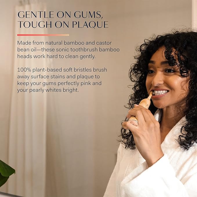 Better & Better Bamboo Sonic Toothbrush Replacement Heads | Replaceable Bamboo Sonic Brush Heads w/Soft, Plant-Based Bristles for High-Polish, Gentle Clean | Whitens Surface Stains & Removes Plaque