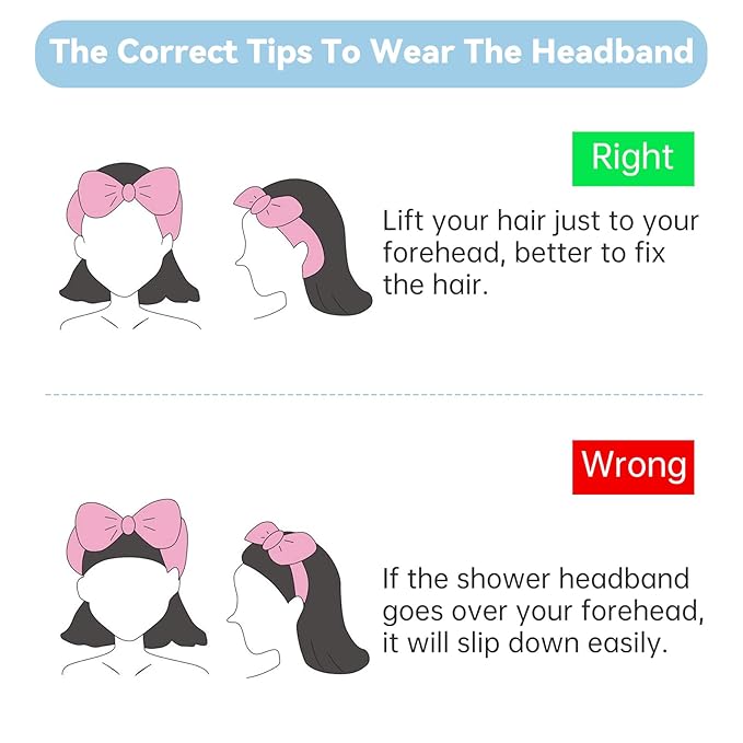 - Product Size:The spa headband can be used for adults as well as for children.The soft texture does not harm to children's skin.The size is about 8.3 inch length and 2.2 inches width, can be stretched to 15.1 inch, easily to fit your head size