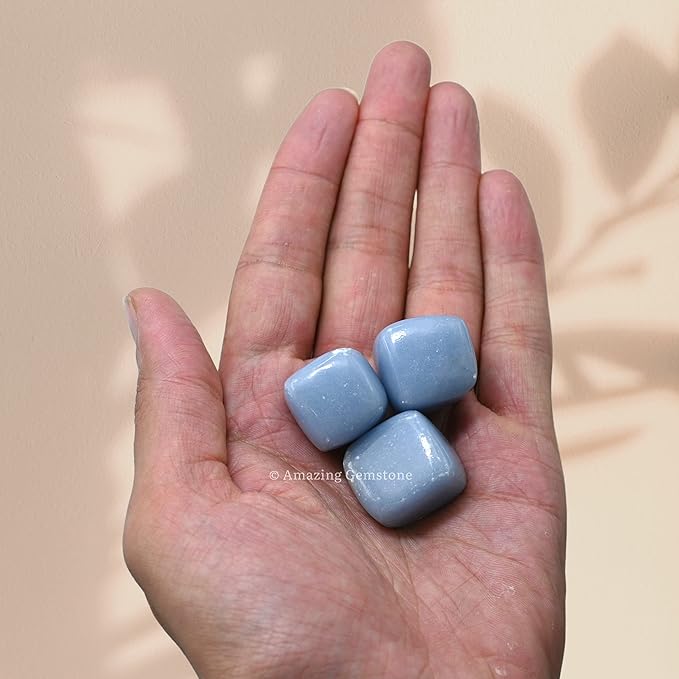 Amazing Gemstone Angelite Crystals and Healing Stones Tumbled - 1 oz, Natural Healing Stones for Energy Balance, Stress Relief - Premium Polished Gems Rocks for Meditation & Wellness