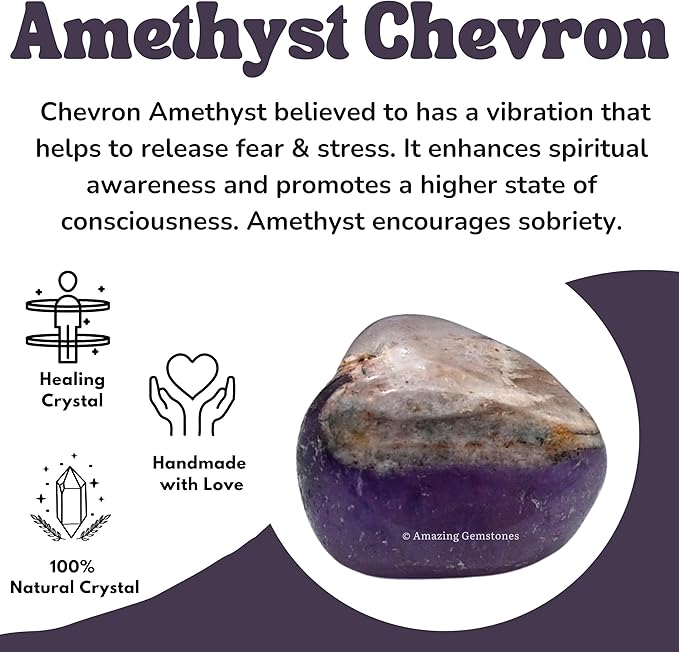 Amazing Gemstone Chevron Amethyst Crystals and Healing Stones Tumbled - 1 oz Chevron Amethyst Stone, Natural Healing Stones for Energy Balance, Stress Relief - Premium Polished Gems Rocks