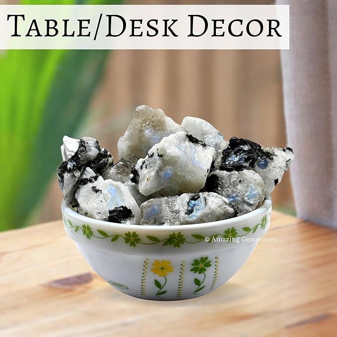 Amazing Gemstone 2 Pieces Rainbow Moonstone Raw Crystals and Healing Stones, Natural Rocks for Tumbling and DIY Raw Stones and Crystals