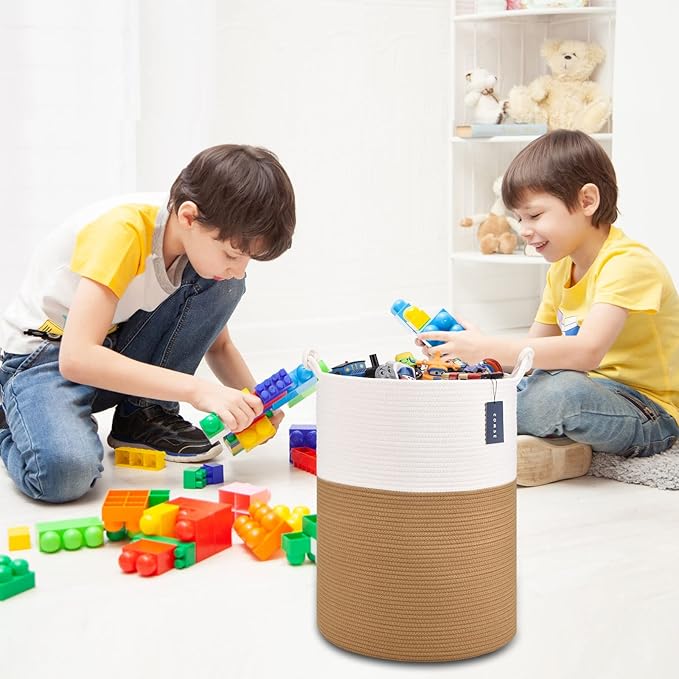 COMSE Extra Large Blanket Basket, Tall Woven Storage Basket, Nursery Hamper, 15.7”x 21.7”, Cotton Rope Laundry Hamper for Toys Clothes Towels, White/Camel