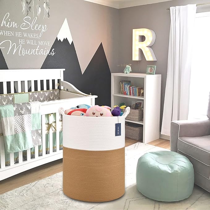- 【Soft and Sturdy】Strong and reliable high storage basket, stand up on its own, no collision scratches, perfect to accommodate baby's clothes and other toys in nursery.