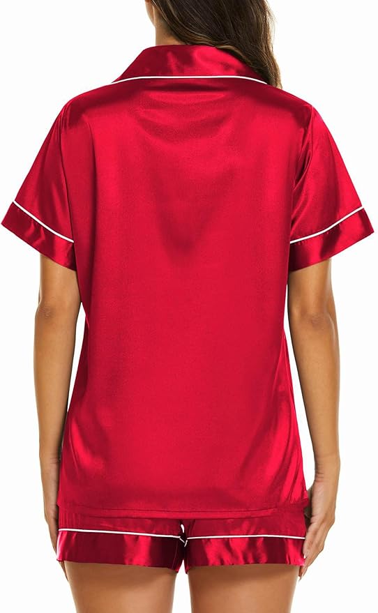 Ekouaer Silk Pajamas for Women Short Sleeve Sleepwear Soft Button Down Loungewear 2 Piece Satin Pjs Shorts Set S-XXL