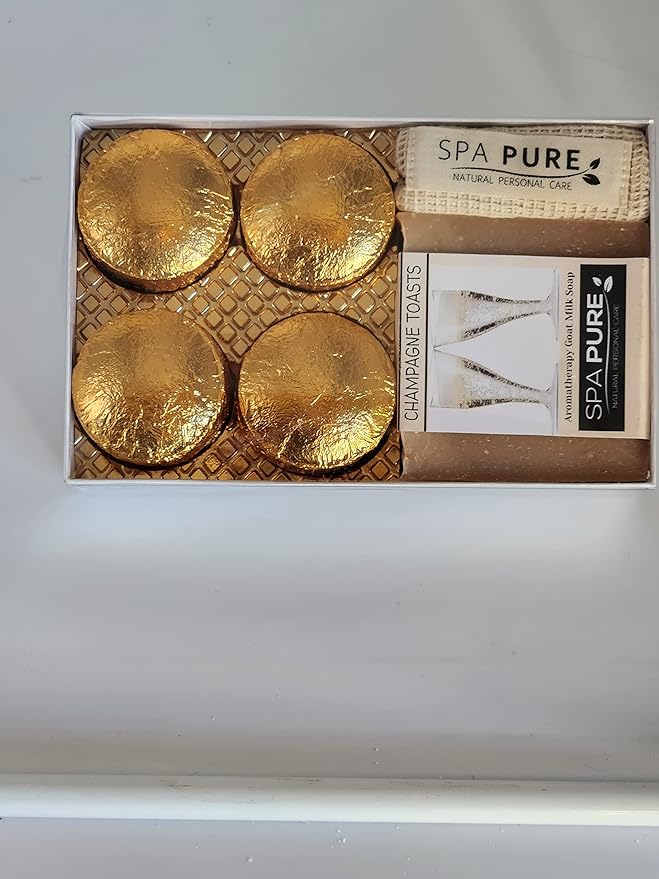 Spa Pure Aromatherapy Gift Set - Champagne Toasts Bath Melts and Artisan Soap - Made in USA with Plant Based Ingredients - Cotton Soap Bag
