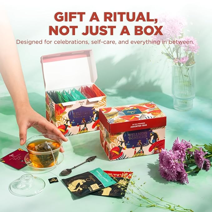 CHAYAM Assorted Tea Bags Variety Pack | 20 Pyramid Tea Bags - 5 Flavours x 4 each | Tea Bag Sampler Assortment | Green Tea, Herbal Tea Gift Box
