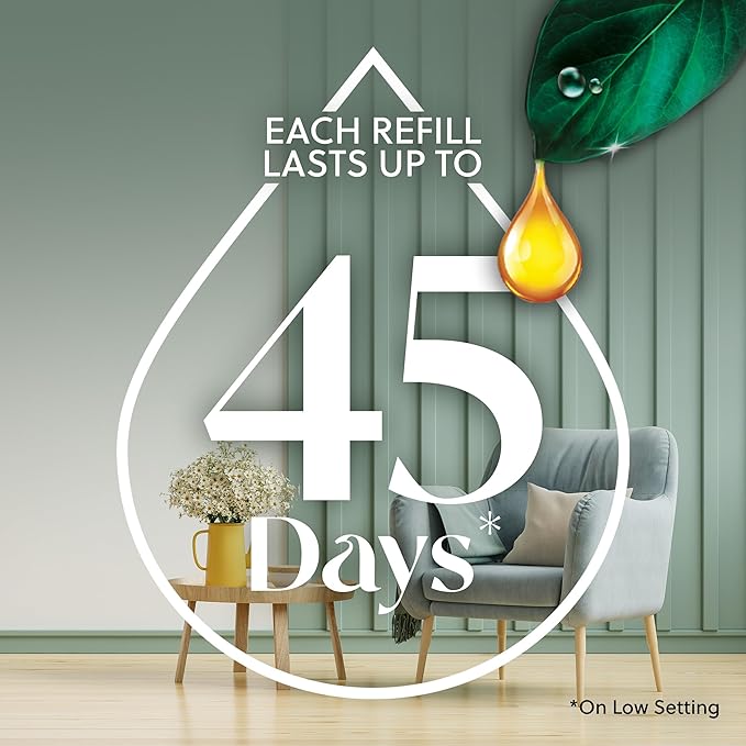 - VALUE: Each refill provides up to 45 days fragrance based on low setting, no need to add water, each refill comes ready to use, easy to change out the refills