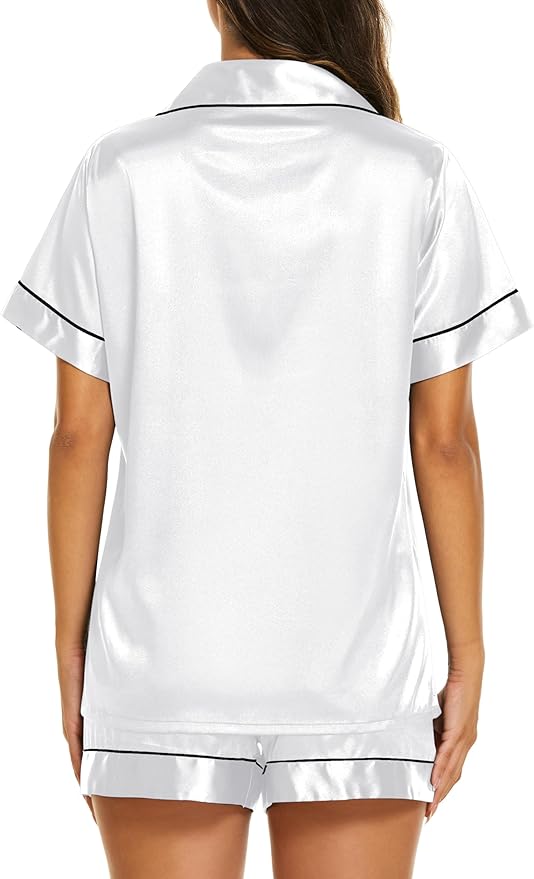 Ekouaer Silk Pajamas for Women Short Sleeve Sleepwear Soft Button Down Loungewear 2 Piece Satin Pjs Shorts Set S-XXL