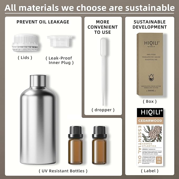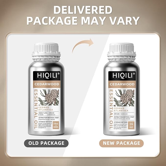 HIQILI 16 Fl Oz Cedarwood Essential Oil, Pure Natural Cedarwood Oil for Diffuser, Aromatherapy - 500ML