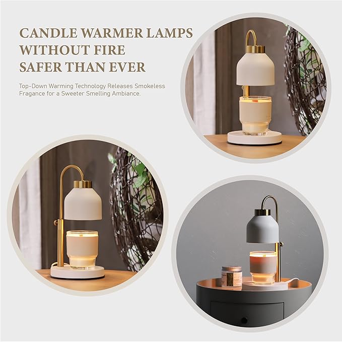 - 【Suitable for all sizes of candles】Candle lamp warmer is designed with grooves on the base for storing candles of all sizes, and the height-adjustable lamp pole design allows you to adjust the distance of the lamp head to fit your candles.