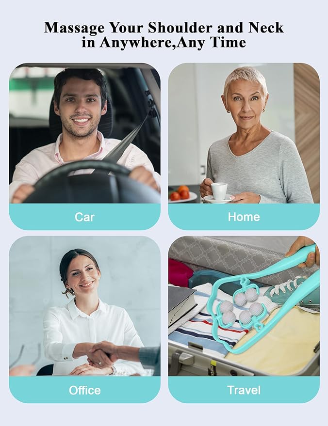 Upgrade Neck Massager, Neck Massager for Pain Relief deep Tissue, 6 Balls Massage Roller,Manual Massager, Shoulder Massager, Handheld Neck and Back Massager Roller Legs Shoulder Relaxer