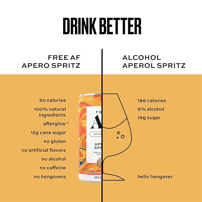 AF Drinks Non-Alcoholic Apero Spritz | Alcohol Alternative Sparkling Cocktails with AFTERGLOW Botanical Warmth | Gluten-Free, Low-Calorie | 8.4 oz Cans (12-Pack)