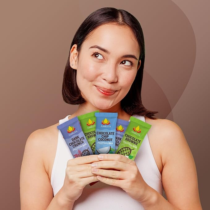 Amrita Nut Free Chocolate Variety Pack Vegan Protein Bars (12 Count) | 12g Plant-Based Protein Bar | Peanut Free, Gluten Free, and Dairy Free | Low Sugar, High Fiber, Healthy School-Safe Snacks