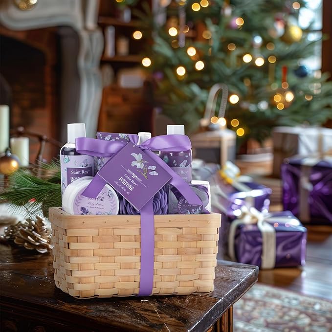 Bath & Shower Spa Basket Gift Set, Perfume Scent spa kit for women w/ Shower Gel, Bubble Bath,Lotions, Bath and Body Christmas Gifts for Women, Self Care Gifts Basket for Her, Birthday Gifts