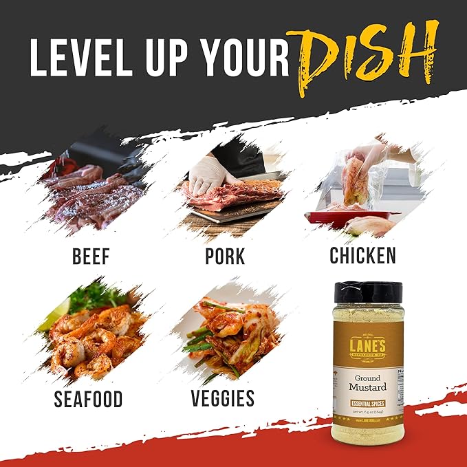 - CHOOSE LANE'S GROUND MUSTARD POWDER IN OUR PANTRY STAPLE SPICES. Our ground mustard powder seasoning comes in a 6.5 oz bottle, handcrafted and made in the USA. Perfect for individuals, home cooks, and chefs who enjoy cooking to elevate their dishes.