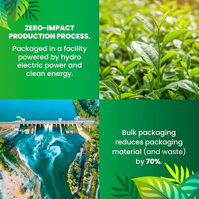 - More Tea, More Satisfaction — Packed with bright beautiful green tea harvested at its peak, our tea is so bold and flavorful you can use each herbal tea bag twice. With no individual wrappings, each pouch holds 100 bags of caffeine-free organic tea.