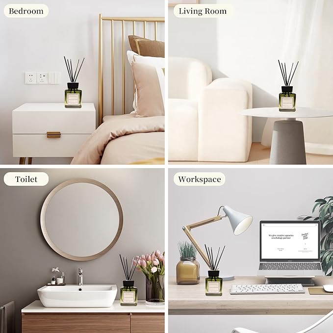 - LONG-LASTING USE:The more diffusion sticks you put in, the stronger the fragrance. The fragrance spreads as the stick absorbs the essential oils. If the fragrance is not strong enough, you can replace the stick and continue to use it, or turning the original stick upside down
