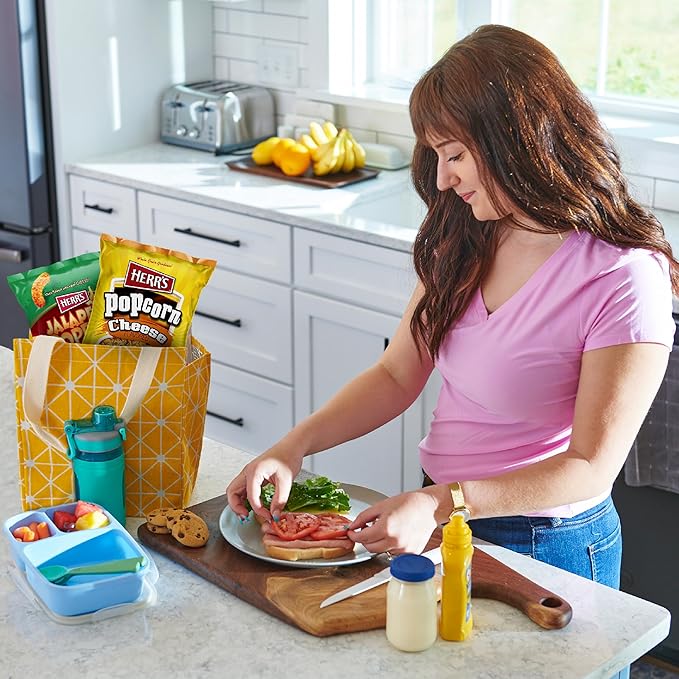 - School Lunch That Packs A Crunchy Punch: Make school days more exciting by packing unique Herr’s chips, crisps, puffs, popcorn snacks, and cheese curls as school lunch snacks.