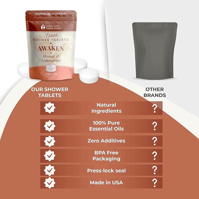 New Awaken Shower Tablets (10 Tabs) Made with Natural Ingredients Scented with Orange and Lemongrass Pure Essential Oils Made in USA
