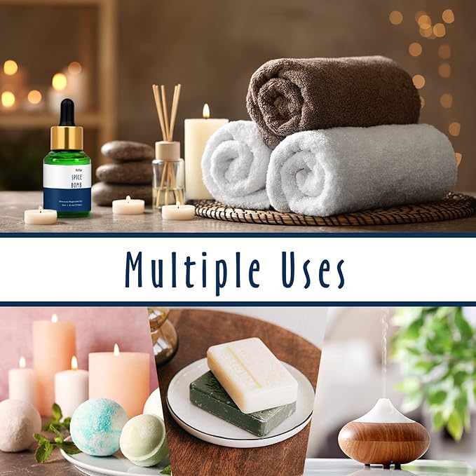 - Our spice bomb fragrance oil includes a powerful, spicy and warm scent, a mixture of sweet and spice notes, a complex and sophisticated scent that is perfect for who love masculine aroma