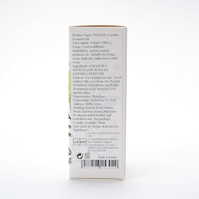 Copaiba 3.38fl.oz Essential Oil, PHATOIL Pure Aromatherapy Oils for Diffuser, Humidifier, Perfect for DIY Soap, Candle, Bath Bombs Making(100ml)