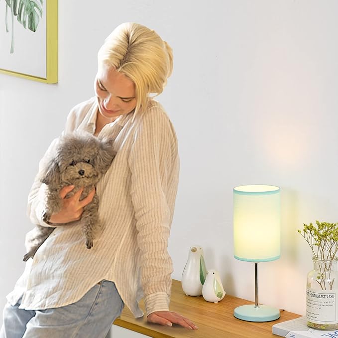 Lampwell Alee Modern Green Table Lamp Set of 2, Living Room & Bedroom, 4.33H12.21IN, Bulb Excluded