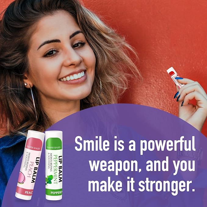 - Flavored Lip Balm: 12 Flavors - Strawberry, Watermelon, Mango, Coconut,Pineapple, Rose, Vanilla, Cherry, Mint, Grape, Peach, Orange