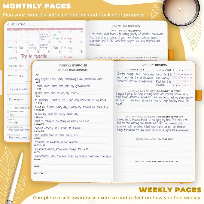 - BUILD A HAPPIER & HEALTHIER MINDSET FOR YEARS TO COME: This self care notebook is filled with prompts, open-ended questions, wellness trackers, and many other tools to help you pinpoint the changes you can make to improve your well-being.